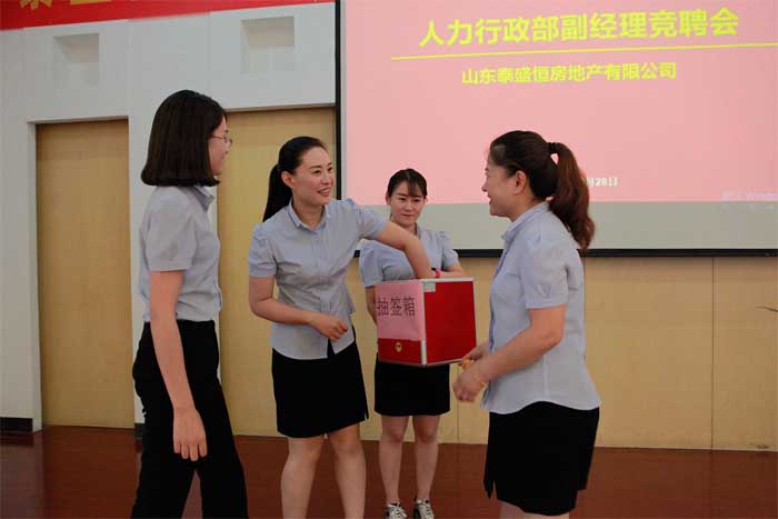為健全公司管理機構,不斷優化人力資源配置,6月28日,泰盛恒地產組織召開人力行政部副經理競聘會。會議由工會主席趙慶芹主持,公司領導班子部分成員擔任評委,地產公司全體員工參加會議。